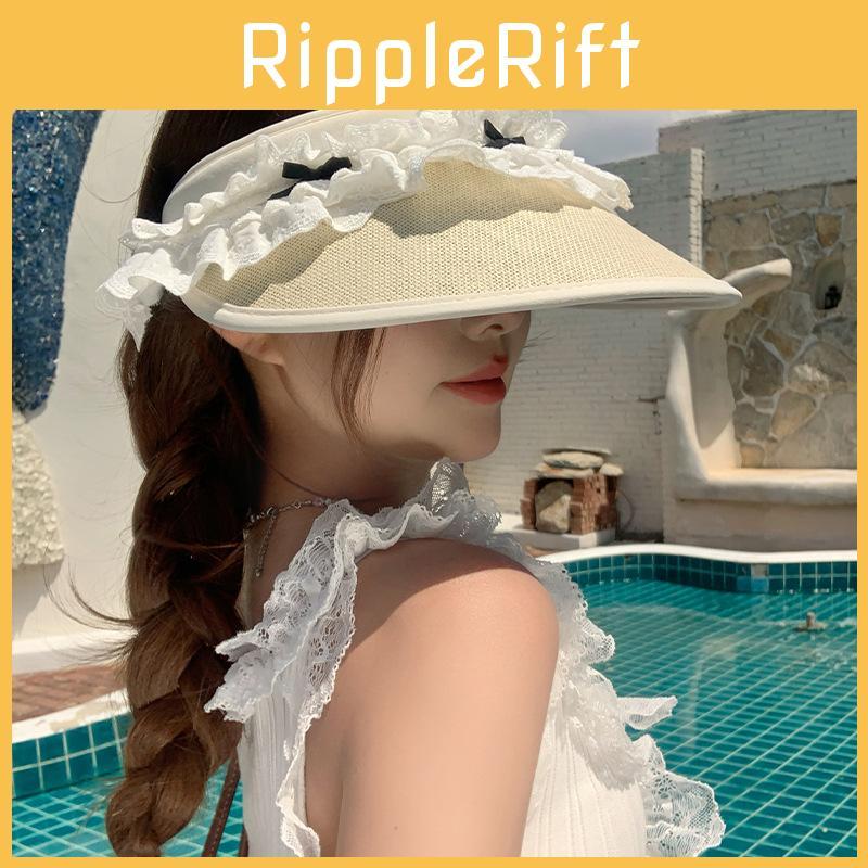 Elegant Lace Bow Wide Brim Sun Protection Hat For Women Adjustable Summer Accessory