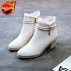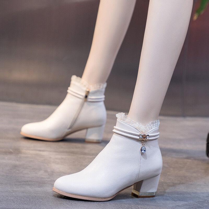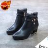 Mode Herbst Winter Elegant mit Mittelhohen Absätzen Weibliche Kurze Schuhe Leder Wasserdicht Runde Zehenpartie Damen Stiefeletten Ausverkauf Neu in Stiefeletten