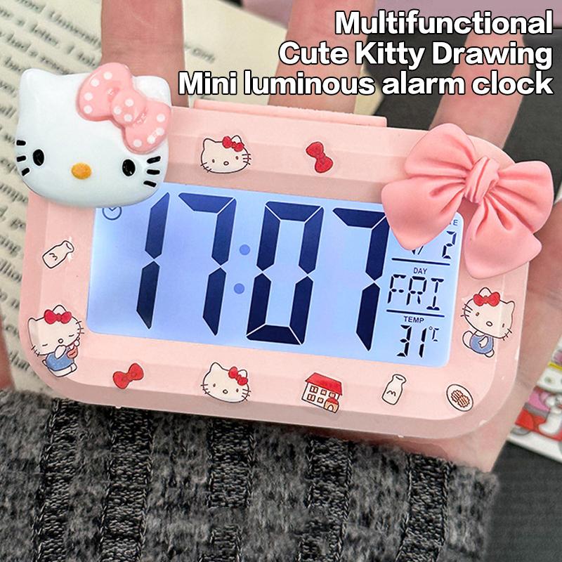 Sanrio Hello Kitty Wecker Cartoon Mini Kitty Katze Nachtleuchtende Wecker Wohnheim Desktop Ornament Student Wecker