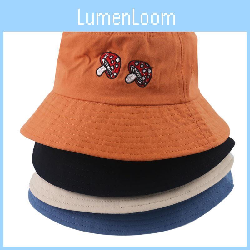 Gelber Pilz Bestickter Fischerhut Baumwollmaterial Sonnenhut für Sommer