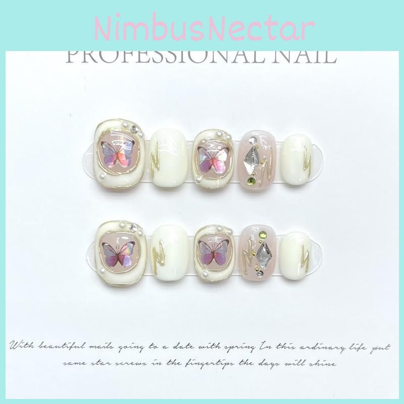 Barocke Schmetterlings-Nagelsticker Perlenbesetzt Kurze Runde Form Süßer Und Französischer Stil