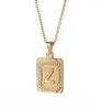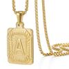 Features an 18K gold square pendant with 26 uppercase English letters