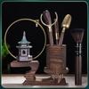 Ebony Tea Ceremony Six Gentlemen Set with Zen Monk Incense Burner