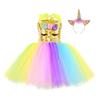 Einhorn Cosplay Mädchenkleid mit Regenbogenmuster für Halloween-Party