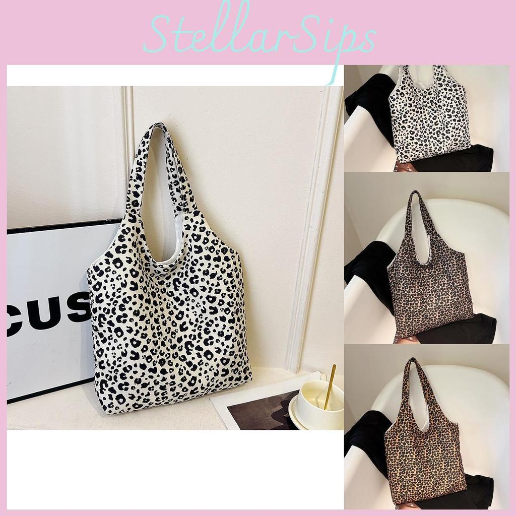 Stylish Leopard Print Canvas Tote Bag For College Students With Spacious Design And Trendy Aesthetic