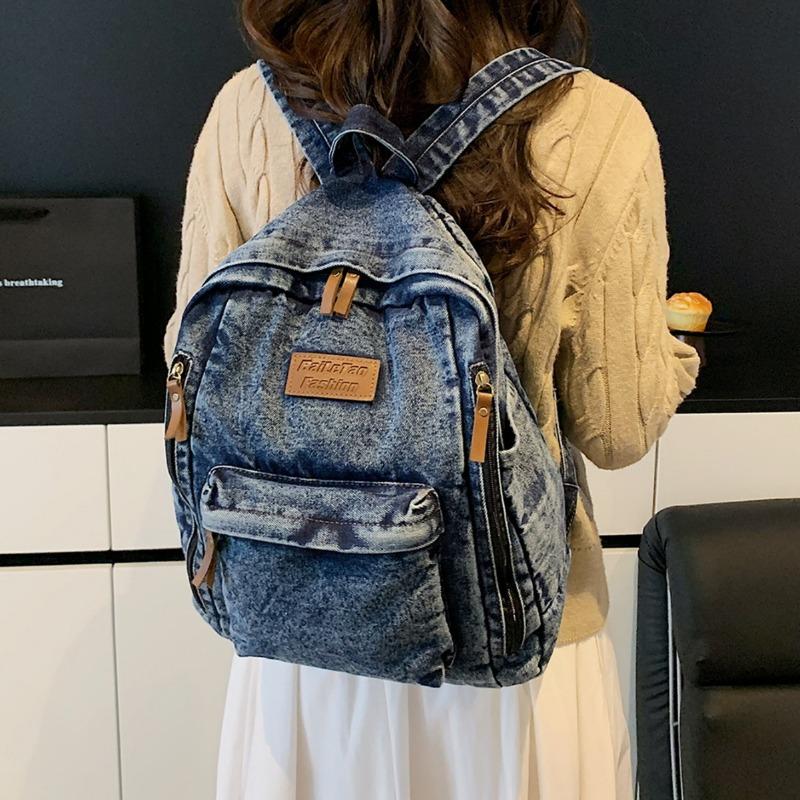 Denim Backpack, Women's Backpack, Fashionable Schoolbag, Harajuku Style Student Travel Handbag