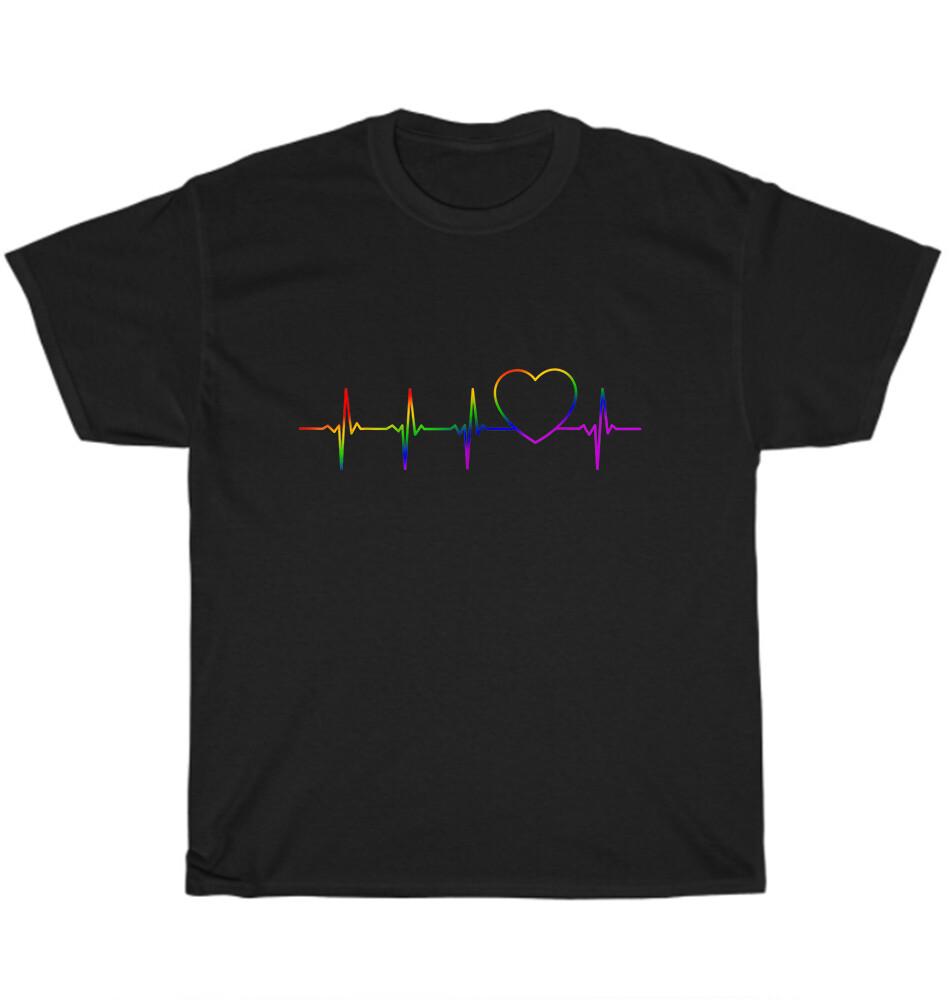 LGBT Heartbeat Heart EKG Pulse Gay Lesbian Pride Rainbow T-Shirt Unisex Tee Gift
