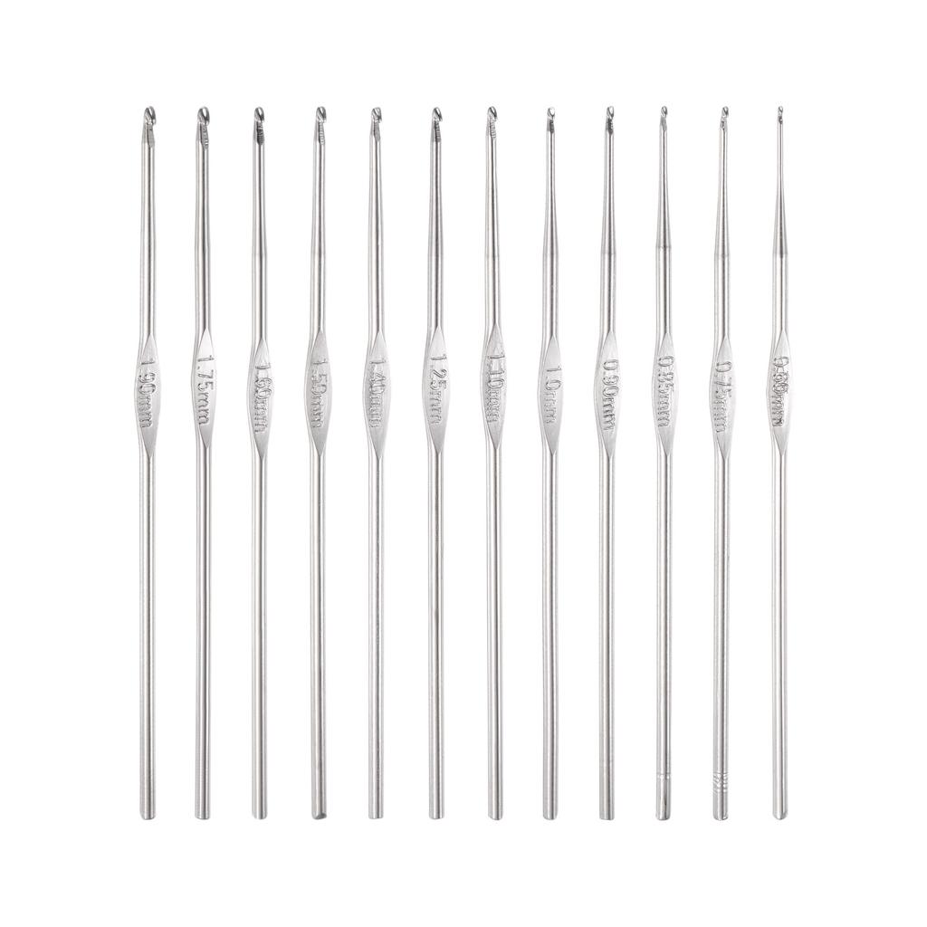Uxcell 12/24/30pcs Stainless Steel Crochet Hook 0.5mm-3mm Knitting Needles Straight Crochet Hook for DIY Weave Sewing Tools