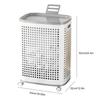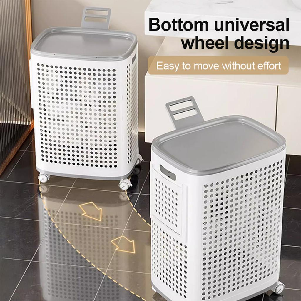 Dirty Clothes Basket Large Capacity Hollow Out Laundry Basket with Wheels Bathroom Organizer W/ Lid Washing Basket for Home Use