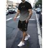 Printed Men's 2-piece Round Neck Short Sleeved Top and Shorts Set for Comfort