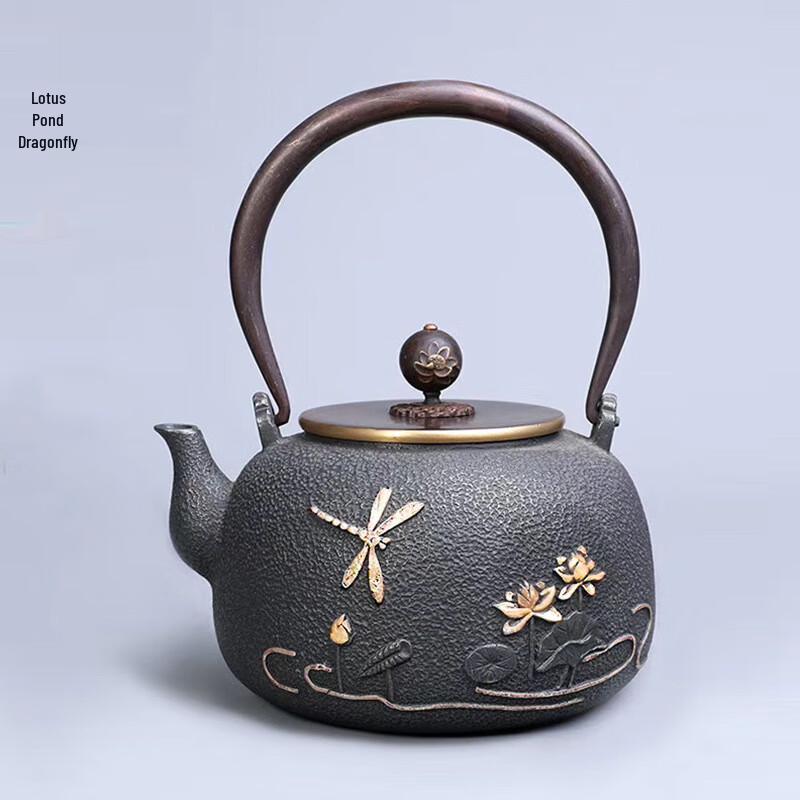 Iron Teapot Kettle with Lotus Dragonfly Design