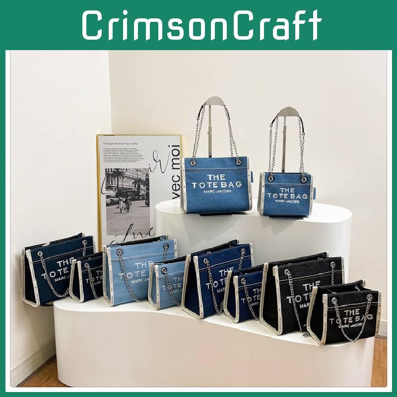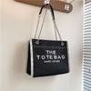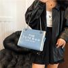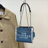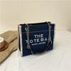 Stylish 2024 Autumn Fashion Letter Print Large Capacity Denim Canvas Tote Bag For Women In Black Blue And Sky Blue