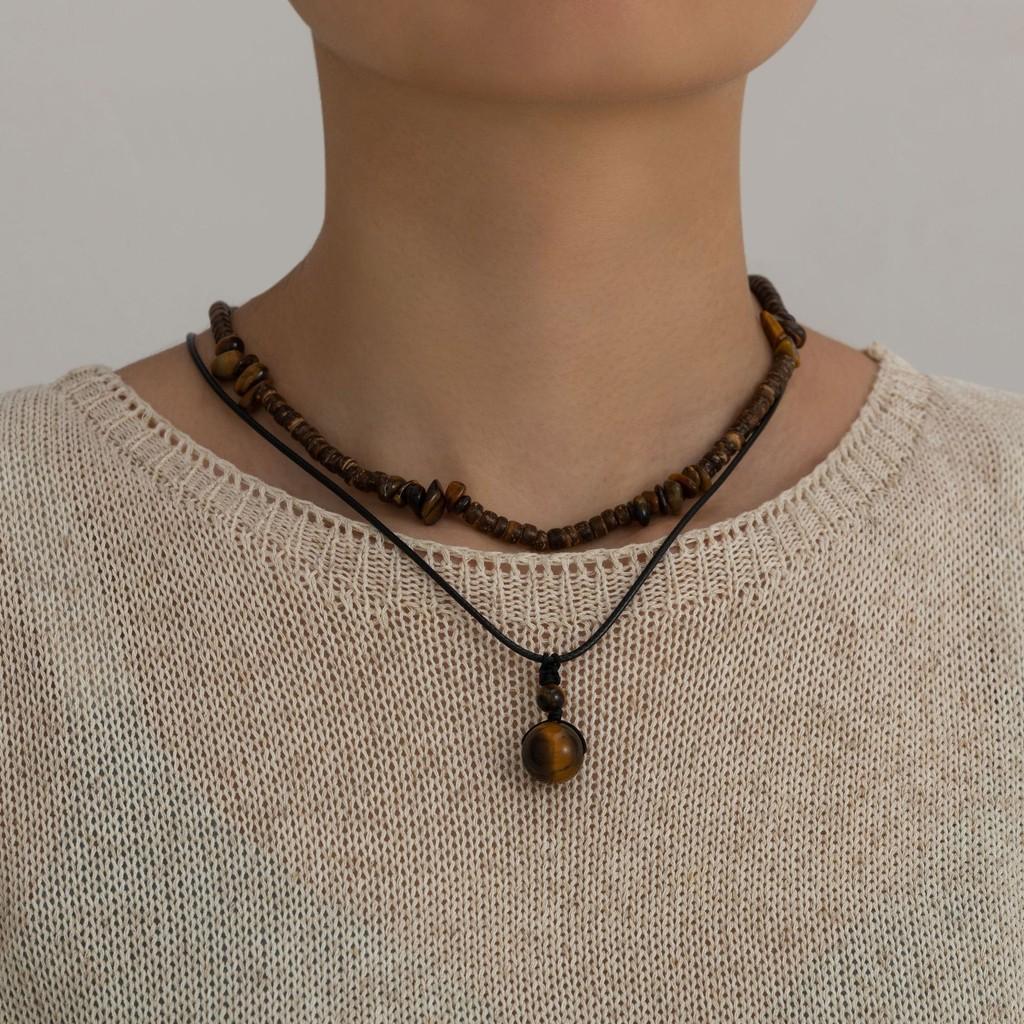 Stilvolles Unisex-Halsketten-Set aus Holzperlen und Türkis für modische Alltagsmode