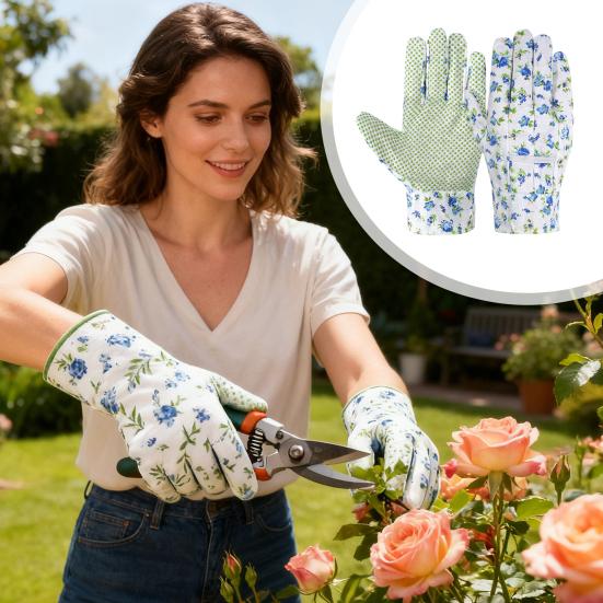 Strapazierfähige und durchstichfeste Gartenhandschuhe, die Ihre Hände vor scharfen Gegenständen wie Ästen und Rosendornen schützen.. Hergestellt aus dickem, verschleißfestem Material, verlängern diese Handschuhe die Haltbarkeit und bieten durch ein ergonomisches Handflächen- und Fingerdesign exzellenten Grip.. PVC-Partikel auf der Handfläche und den Fingerspitzen sorgen für starke Rutschfestigkeit, sodass Sie nasse und rutschige Werkzeuge, Pflanzen und Töpfe sicher handhaben können.