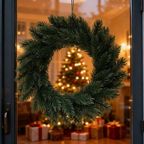 Saisonales Design: Dieser traditionelle Winterkranz zeichnet sich durch üppiges Grün aus, das den klassischen Weihnachtscharm einfängt.. Sein üppiges, volles Laub bereichert jeden Raum sofort mit festlicher Weihnachtsstimmung und macht ihn zu einem perfekten Mittelpunkt für saisonale Dekoration.