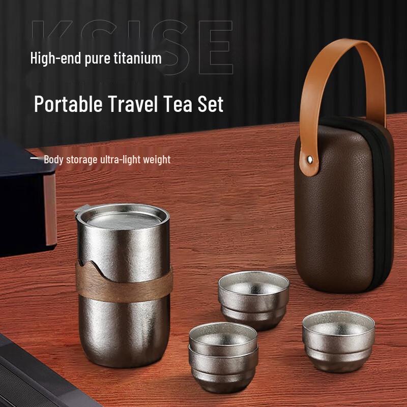 KASITES Pure Titanium Portable Travel Tea Set (1 Pot, 4 Cups)