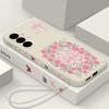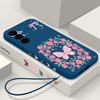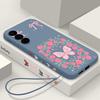 Vintage Flower Butterfly Case For Samsung Galaxy A56 A17 A26 A16 A36 A55 A54 A53 A15 S24 S25 FE S25 S22 S23 Ultra Plus Lanyard Soft Cover