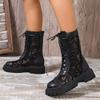 Mode 2024 Sommer Hohe Qualität Damen Schuhe Mode Runde Zehe Einfarbig Hohle Atmungsaktive Mittelhohe Ferse Schnürung Kurze Damenstiefel