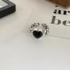 Chic Retro Black Onyx Heart-shaped Ring For Women Unique Adjustable Finger Jewelry