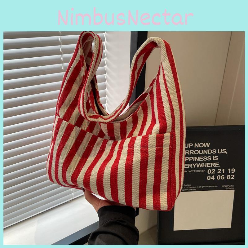 Stylish Trendy Striped Shoulder Bag Casual Large Capacity Cotton Tote Bag