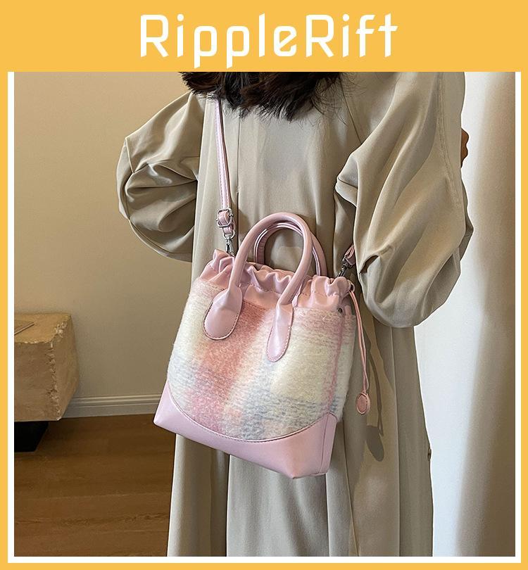 2023 Neue Koreanische Farbblock-Freizeit-Tasche Vintage-Mode Woll-Eimer-Tasche Grenzüberschreitender Trend-Stil