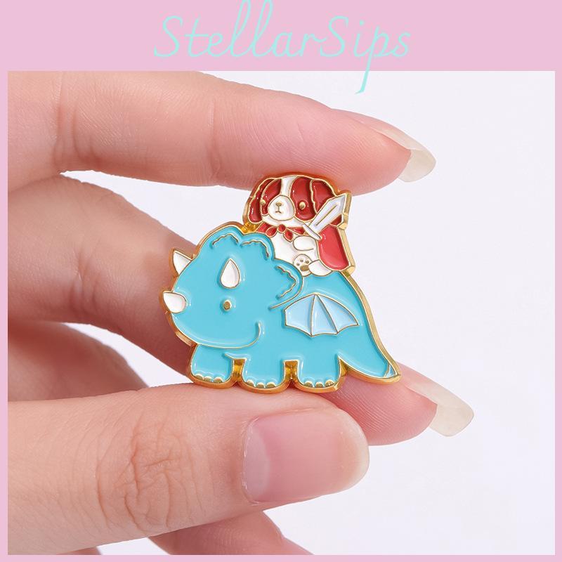 Charming Anime Character Brooches Delightful Animal Pins Cute Dinosaur And Dog Knight Design