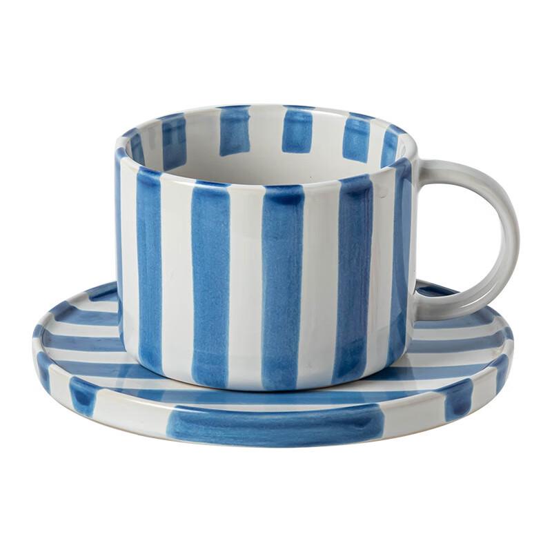 Ins Style Gestreiftes Keramik Kaffeetassen- und Untertassenset