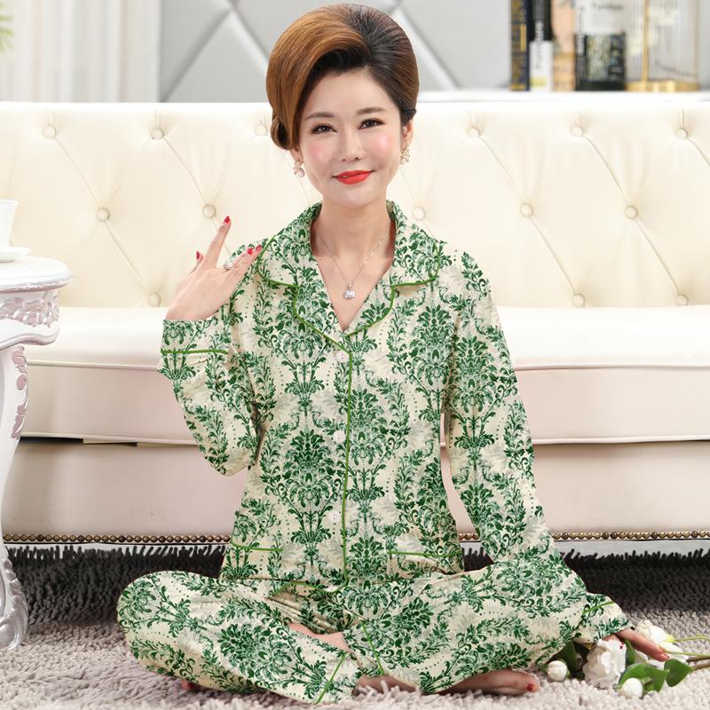 Damenpyjama aus Baumwollimitat Herbst langärmelige Hose kann draußen getragen werden floral luxuriös neu chinesisch Loungewear-Set