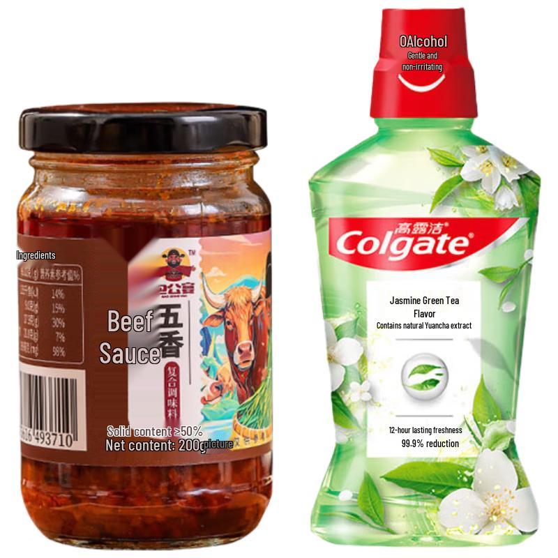 Colgate Jasmine Green Tea Mouthwash & Baogongyan Beef Sauce Bundle