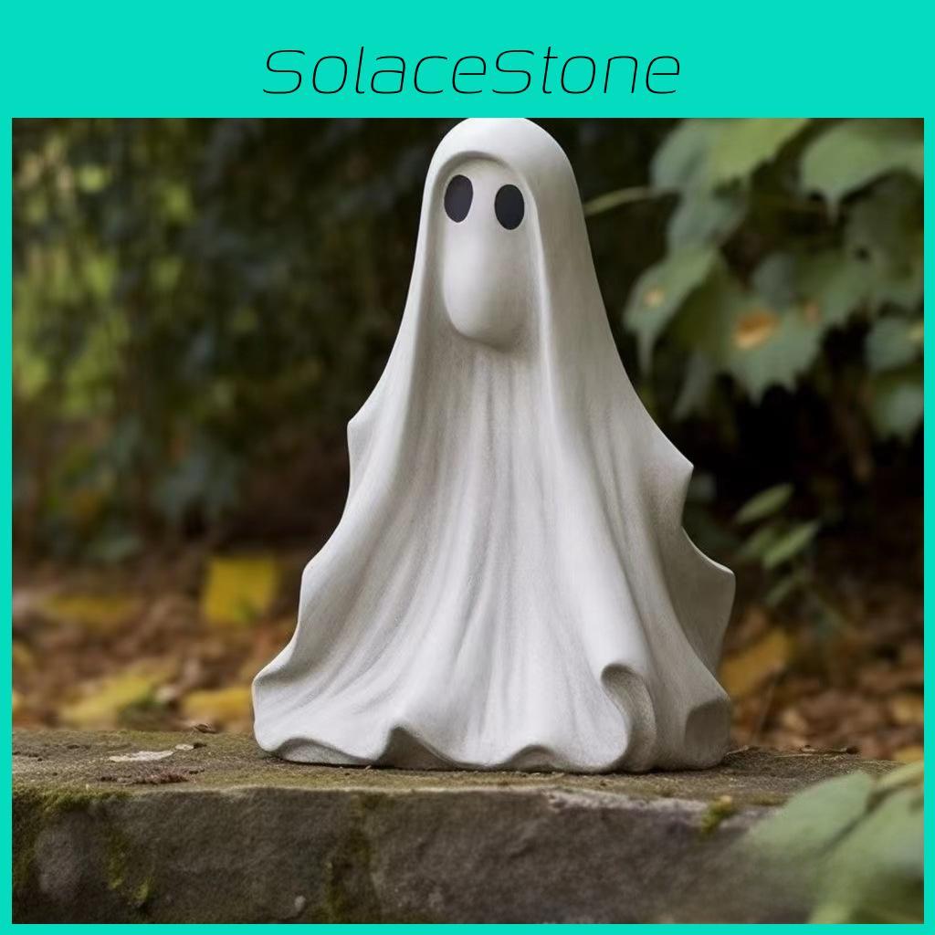 Charmantes Design: Diese niedliche weiße Geisterskulptur verleiht Ihrem Garten oder Außenbereich eine skurrile Note und macht sie zu einer entzückenden Dekoration für Halloween-Feiern.