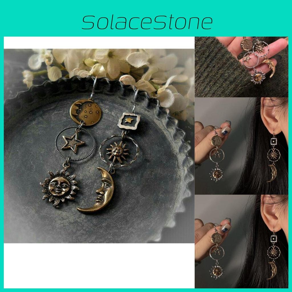 Unique Design: Featuring a vintage star, sun, and moon motif, these earrings offer a distinctive and eye-catching accessory for any outfit.