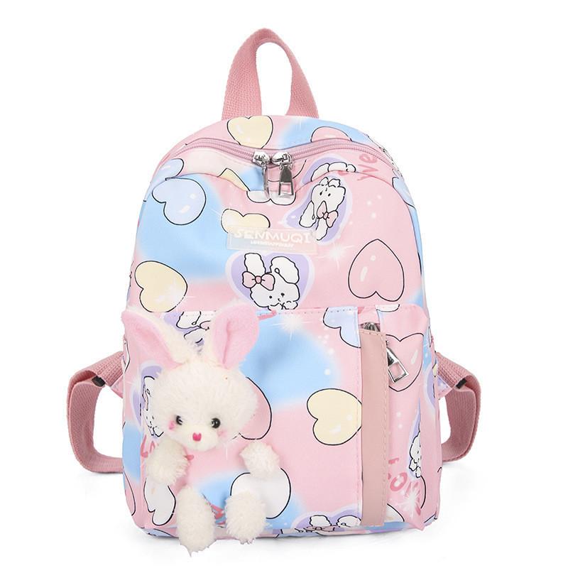 Adorable Cartoon Nylon Kids Backpack For Kindergarten Boys And Girls In Pink