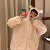 Harajuku Kawaii Zipper Hoodie Frauen Sweatshirt Japanischen Frosch Dicke Übergroßen Lämmer Wolle Mäntel Trend Warme Winter Kleidung