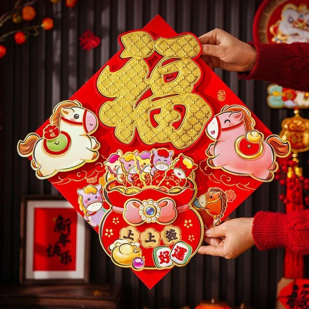 Zodiac Horse Spring Festival Decoration Flocking Lucky Fu Sticker Window Decoration
