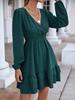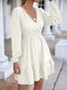 Spring New Arrivals V-Neck Long Sleeve Ruffles A-Line Dress for Women