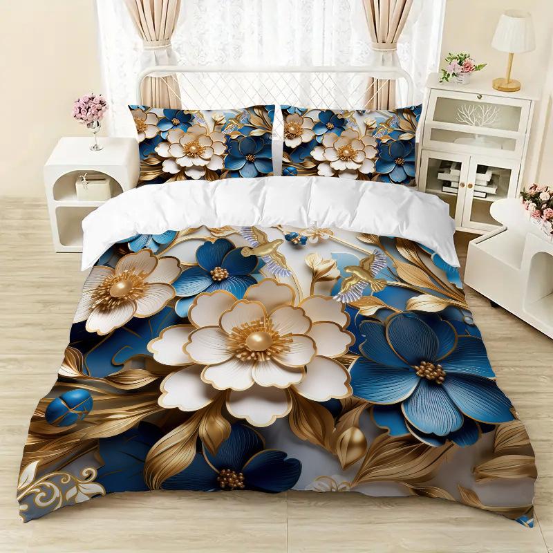 3D Digitaldruck Dreidimensionale Blume DIY Bettbezug Dreiteilige Bettwäsche
