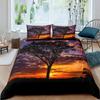 Tropischer Baum Sonnenuntergang Bettbezug-Set, Landschaftsdruck Quilt-Set Dreiteiliges Set