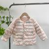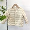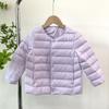 Leichte Daunenjacken für Kinder im Winter werden über dem Innentank getragen.. Im Winter 2025 haben ältere Kinder, Mädchen und Babys weiße Entendaunen.
