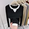 European fake two V-neck sweater women's 2025 spring Korean version contrasting color splicing inner top long-sleeved knitted base