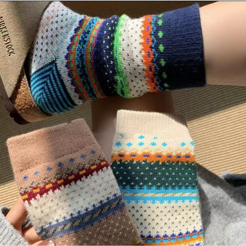 Spring, Autumn and Winter Women's Socks Sports Ethnic Style Pile Pile Socks Colorful Super Breathable Retro Mid-calf Socks