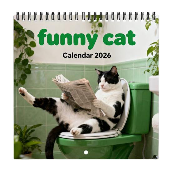 Dieser Wandkalender 2026 hat ein einzigartiges und charmantes "Lustige Katzen"-Thema und zeigt Katzen in humorvollen, menschenähnlichen Posen, während sie auf Toiletten sitzen und Zeitungen lesen.. Jeder Monat präsentiert ein hochauflösendes, lebendiges Bild vor retro- oder modernen Badezimmerhintergründen, die mit grünen Pflanzen und stilvollen Fliesendekorationen geschmückt sind und eine gemütliche und entspannte Atmosphäre schaffen..