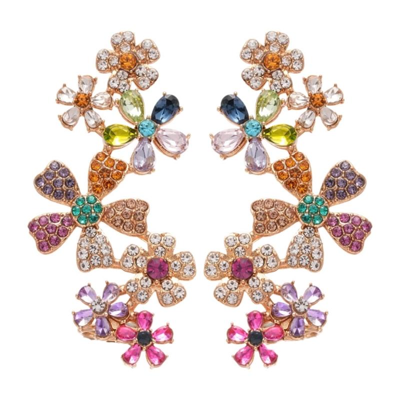 Fashionable Bohemian Style Blossom Earrings With Cubic Zirconia Stones Brass Base Perfect For Date Night Office Wear