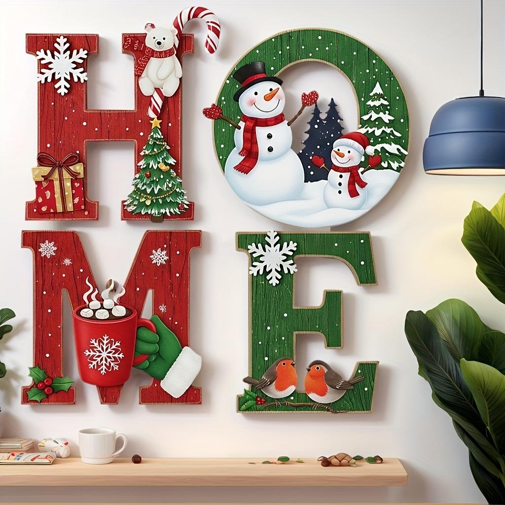 1 Set Weihnachten Europäischer Stil Heimschild Set - Holz Wanddeko mit Festlicher Atmosphäre - Auch Geeignet für Verschiedene,Wanddeko
