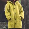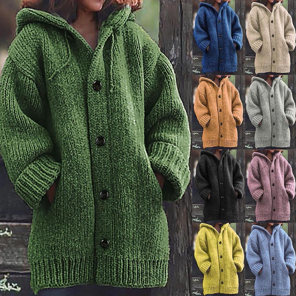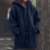 Frauen Casual Warm Lose Knopf Hoodie Stricken Pullover Lange Tops Bluse Pullover