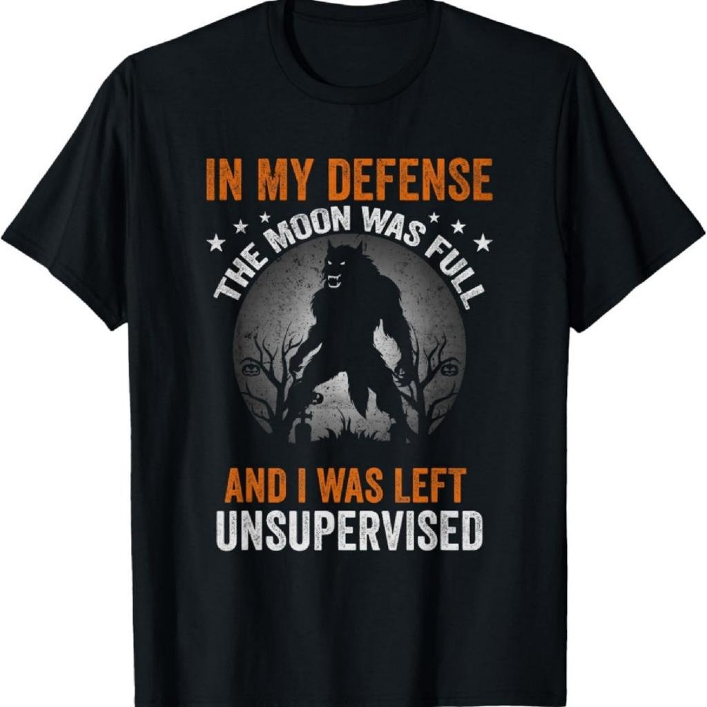 Funny In My Defense Werewolf Halloween Moon Men, Women T-Shirt