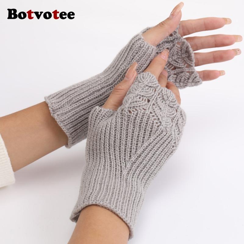Botvotee Sleeves for Women Arm Warmers Free Shipping Y2k Accessories Burgundy Knit Winter Fingerless Gloves Fashion Arm Guard