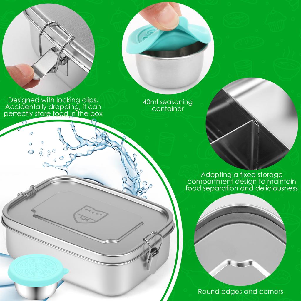 304 Edelstahl Lunchbox 3 Fächer Lunchboxen 1500ML Lebensmittelbehälter mit 2 Gewürzboxen für Kinder und Erwachsene