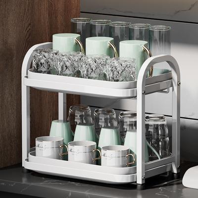 Doppelschichtiges Teetassen-Aufbewahrungsregal mit Abtropfschale für Küche und Wohnzimmer