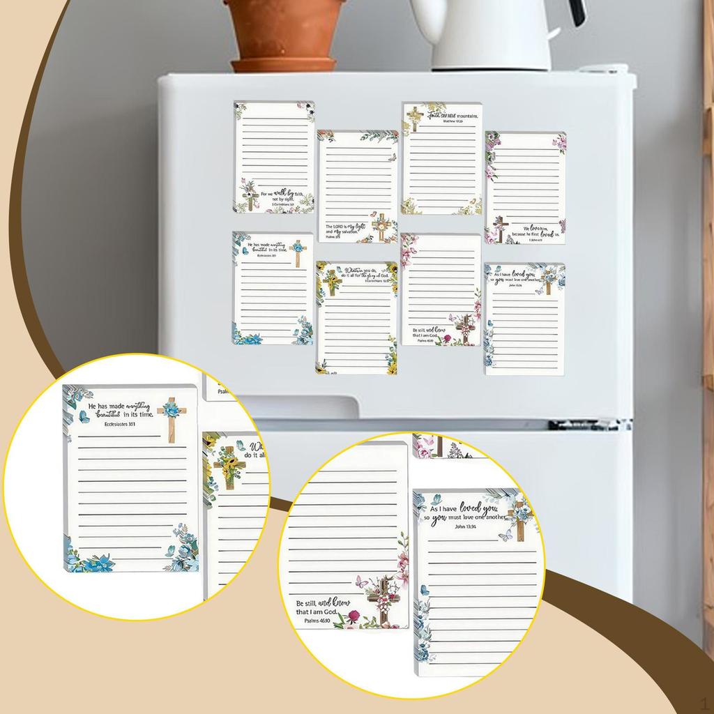 - 【Ample Supply】: Bible Sticky Notes comes in a set of 8 different patterned scripture notepads, 30 sheets per pad. Sufficient quantity to meet your daily use needs, whether at work or home.