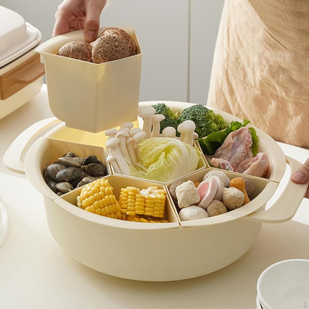 - 【360° Drehbare Bequemlichkeit】Die um 360° drehbare Servierplatte mit Fächern ermöglicht den einfachen Zugriff auf Ihr Lieblingsgemüse, Ihre Snacks oder Zutaten aus jedem Winkel während Hot-Pot-Mahlzeiten.